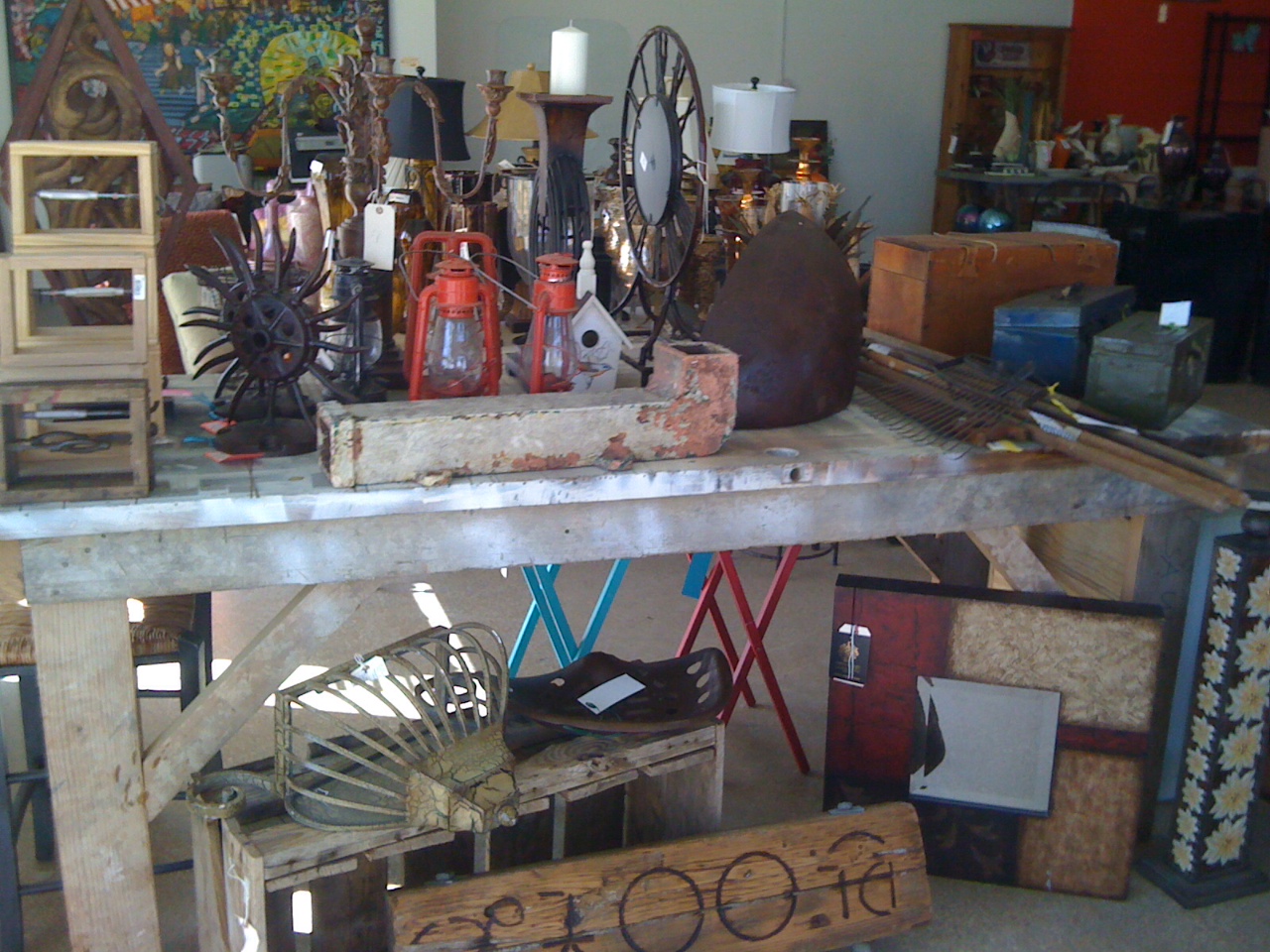 Lots of furniture, industrial, small decor, signs, holiday (including the 10' tree we had in the store last Christmas ) and misc consignments. These are just a few shots from the floor this afternoon.